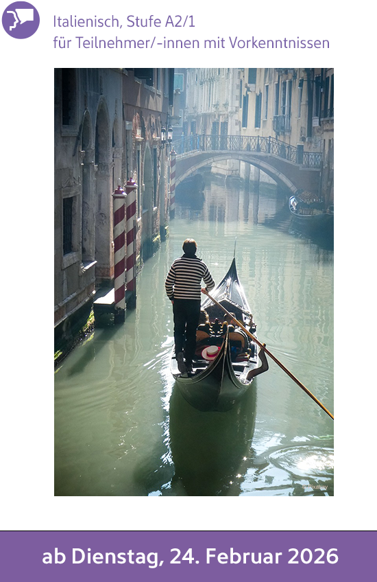 Il Viaggio continua ... Der Kurs richtet sich an Interessent/-innen mit Vorkenntnissen. Geleitet durch das Lehrbuch Nuovo Espresso 2, führen wir unsere Reise zum Erlernen der italienischen Sprache und Kultur fort. Dabei werden die Basics der Sprache vertieft und erweitert.