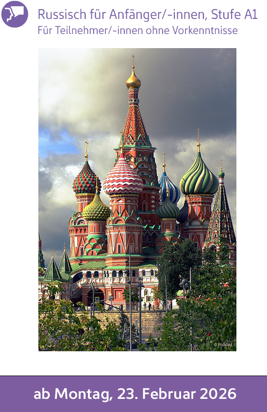 In diesem Kurs lernen wir gemeinsam kurze Dialoge in Alltagssituationen auf Russisch zu führen. Wir lernen außerdem die kyrillische Schrift zu lesen und zu schreiben, sowie auf Russisch zu zählen. Добро пожаловать - Herzlich Willkommen!